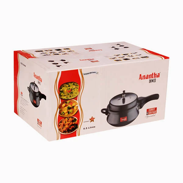 Anantha CNB – Curry and Biryani Aluminium Pressure Cookers. For the first time in India, Anantha presents a cooker designed specially for cooking delicious curries, gravies and biryanis. Its slow cooking feature cooks in low temperature and low pressure. This keeps the food from splitting, which in turn helps preserve all their nutrients. Its wide base and narrow top retain the essence of the spices and masalas instead of steaming them out. Because when you take your time to cook, a delightful experience awaits.