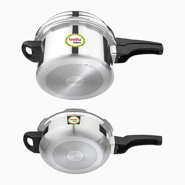 Occasions come in various types, make sure you are ready for them with various types of Pressure Cookers for different cooking needs from Anantha’s Winning Combo Packages. The combined pressure cooker and Extra Deep Cookers are made from Aluminium which helps avoid corrosion to ensure hygienic cooking. The sides are curved for easier stirring, better visibility and easy removal of food. The 5 liter package is an ideal choice for a family of five to seven. The Super Value package is the best of the lot, which comes with an additional cooker. Ideal for a large family. . This pressure cooker is good for cooking in all surfaces like ceramic, induction, electric and gas.