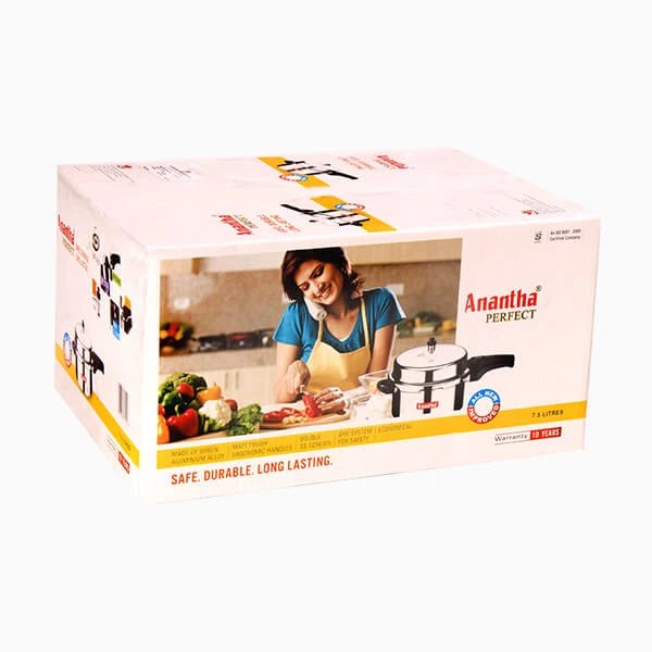 Anantha Perfect model pressure cookers are made with virgin grade aluminium alloy (from Hindalco Industries Ltd.,), which ensures healthy cooking (without Corrosion) and with long life accessories. It can be used for a long period ie., with a warranty of 10 years.